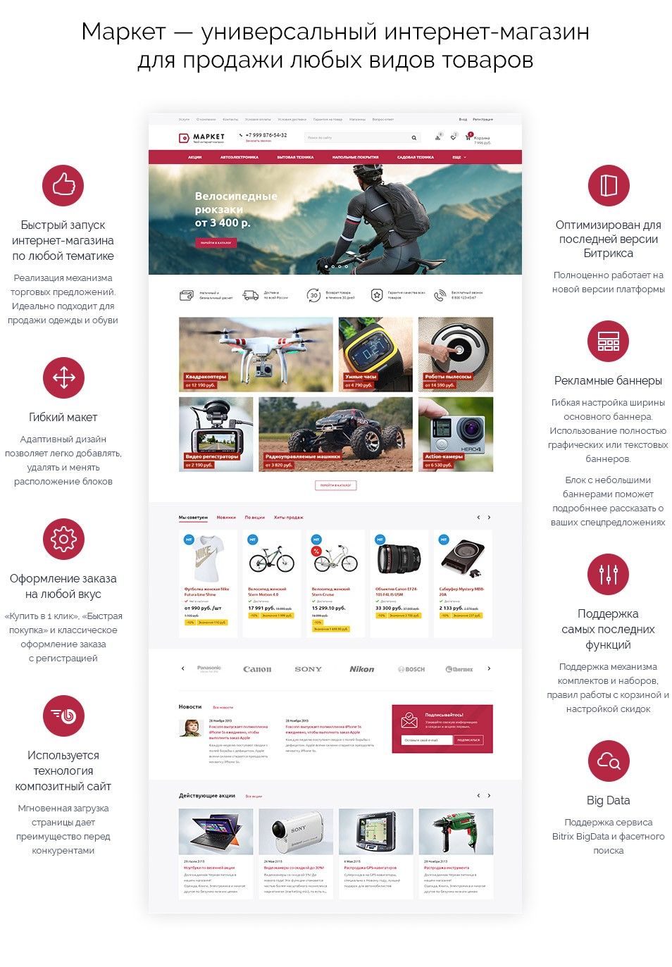 Аспро: Максимум – универсальный интернет-магазин для товаров любой тематики. Разработан с учетом пожеланий пользователей и современных технологий.